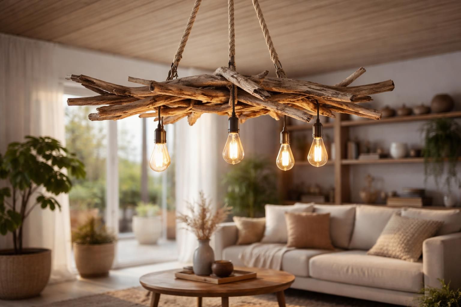 Lustre suspension en bois flotté : le luminaire nature pour votre séjour
