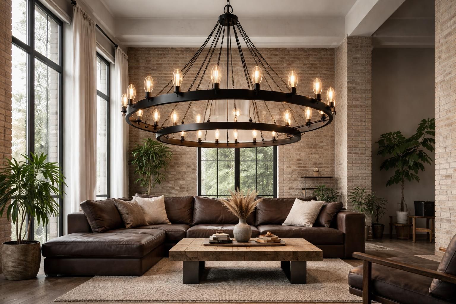 - Bois : Il adoucit le look industriel en ajoutant une chaleur naturelle, pratique dans un salon.