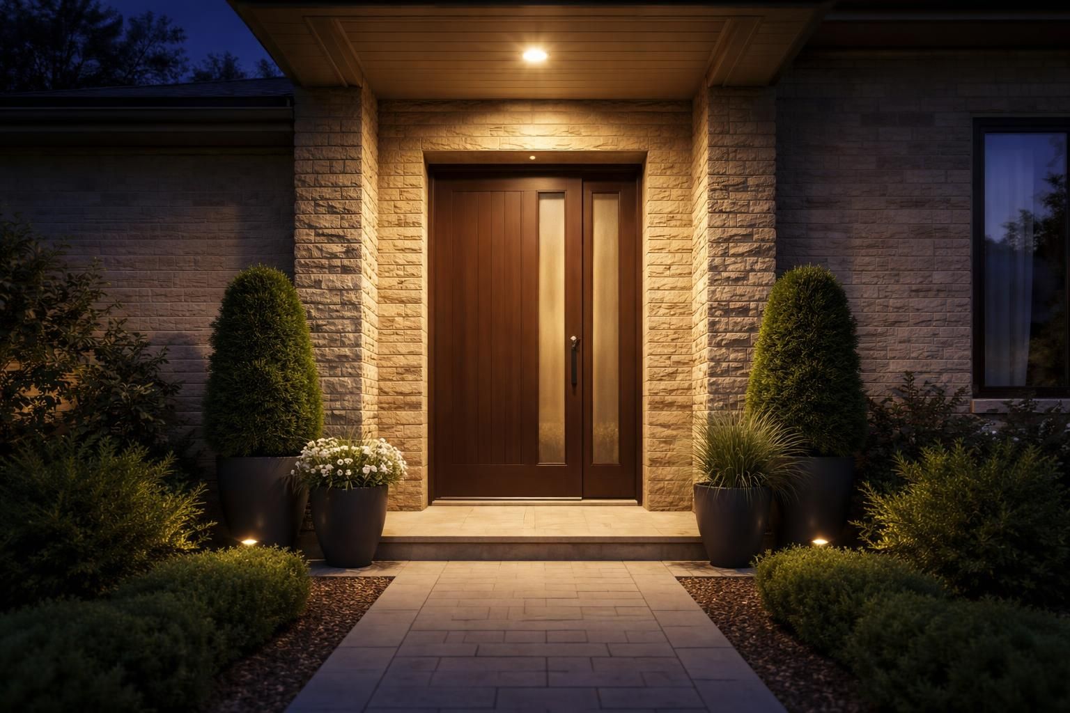 Les systèmes d’éclairage connectés qui permettent de contrôler vos lumières à distance via une application mobile sont de plus en plus courants. Cela vous permet d’ajuster l’intensité lumineuse, de programmer des horaires d’activation, et même d’alimenter des lumières solaires. Une solution simple pour rendre votre porte d’entrée plus accueillante.