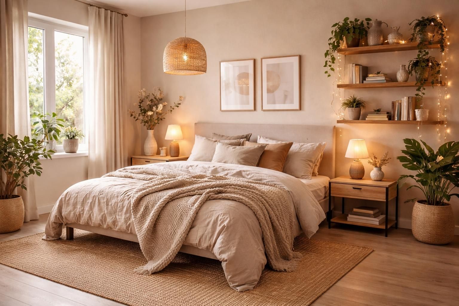 - Textiles doux : Des draps en coton ou en lin, des coussins moelleux et des plaids chaleureusement colorés.